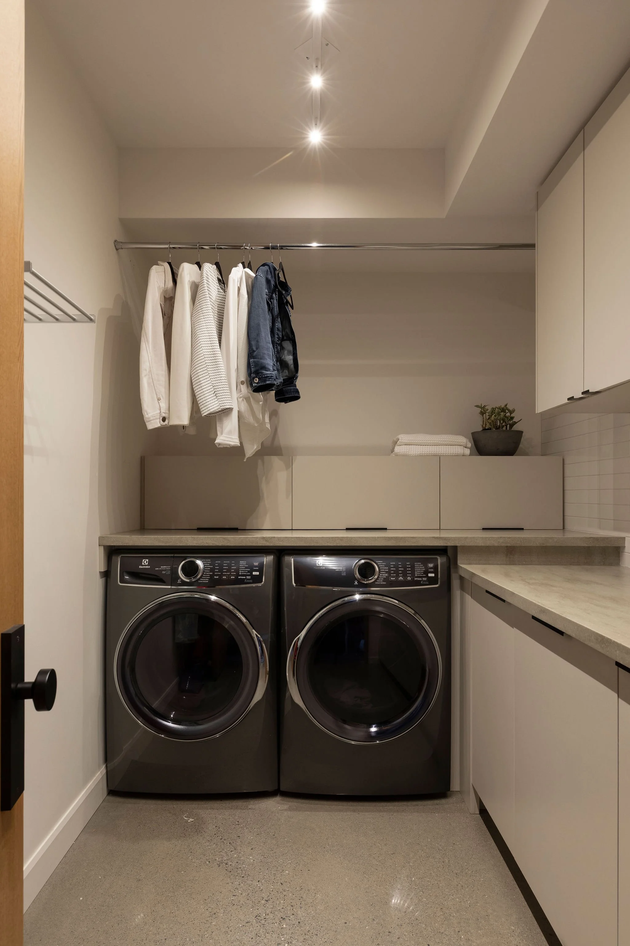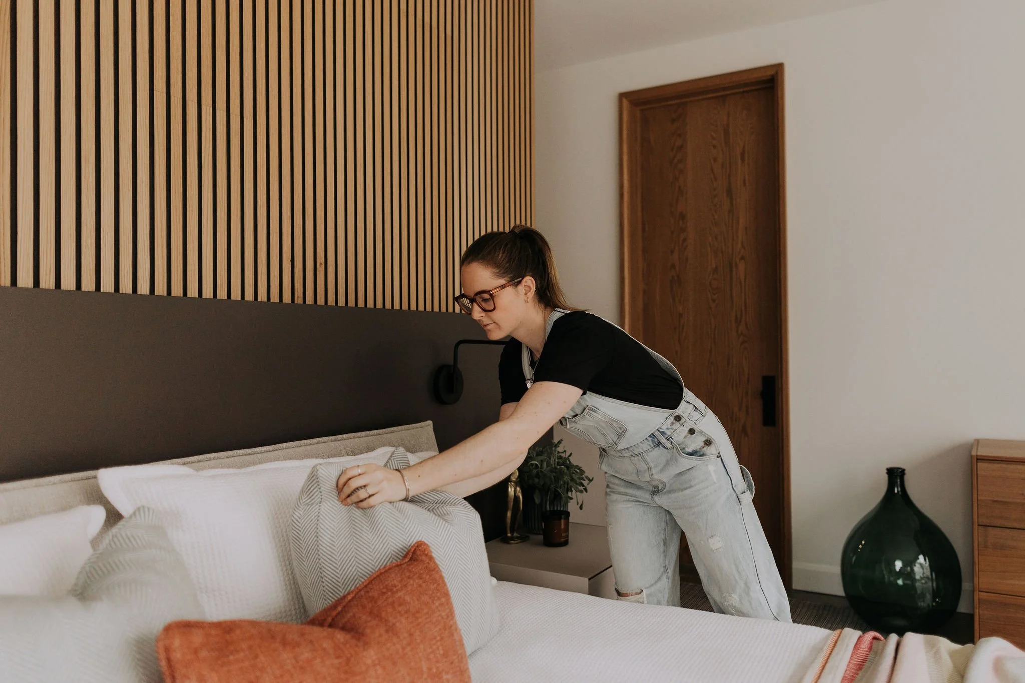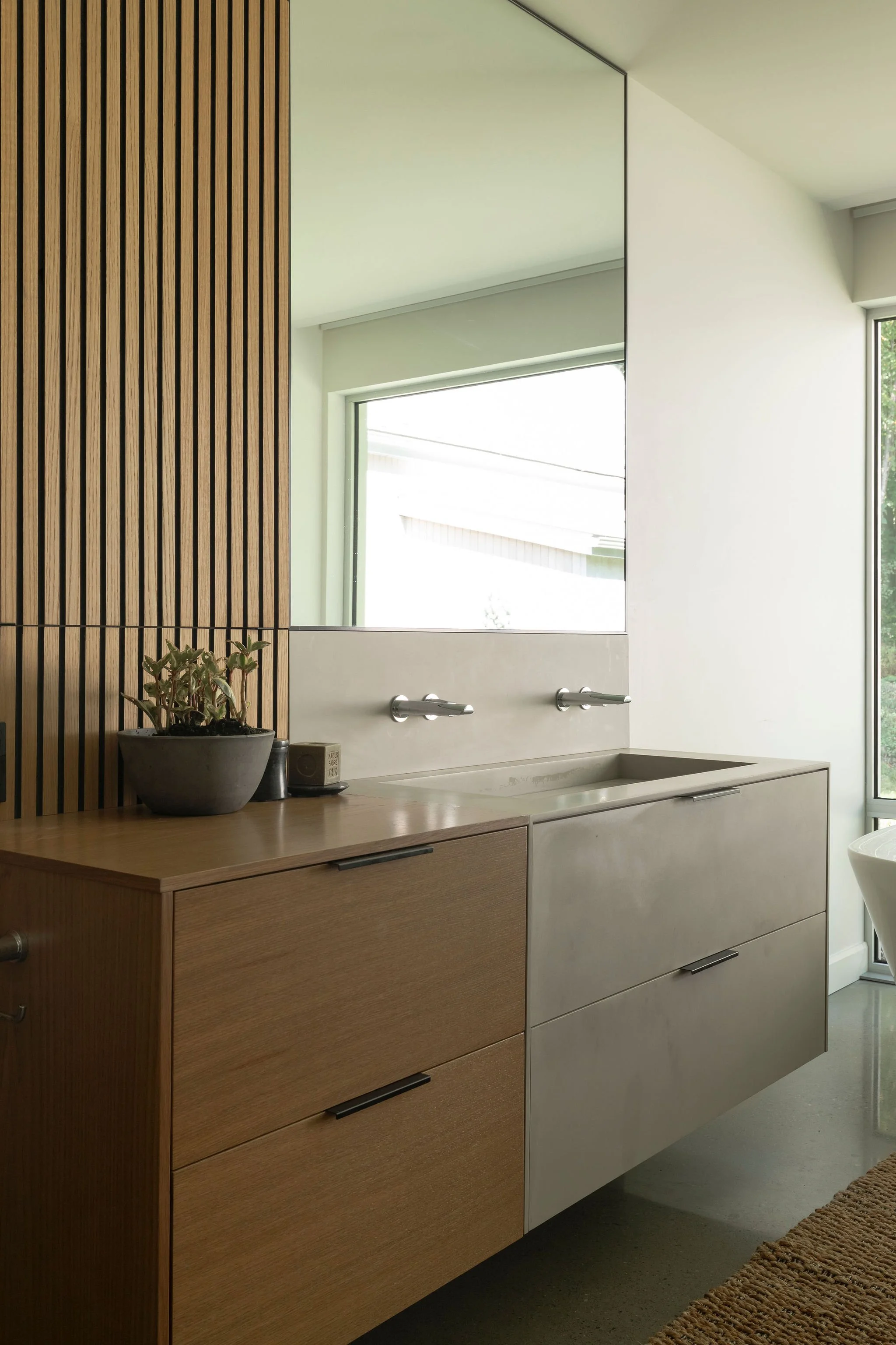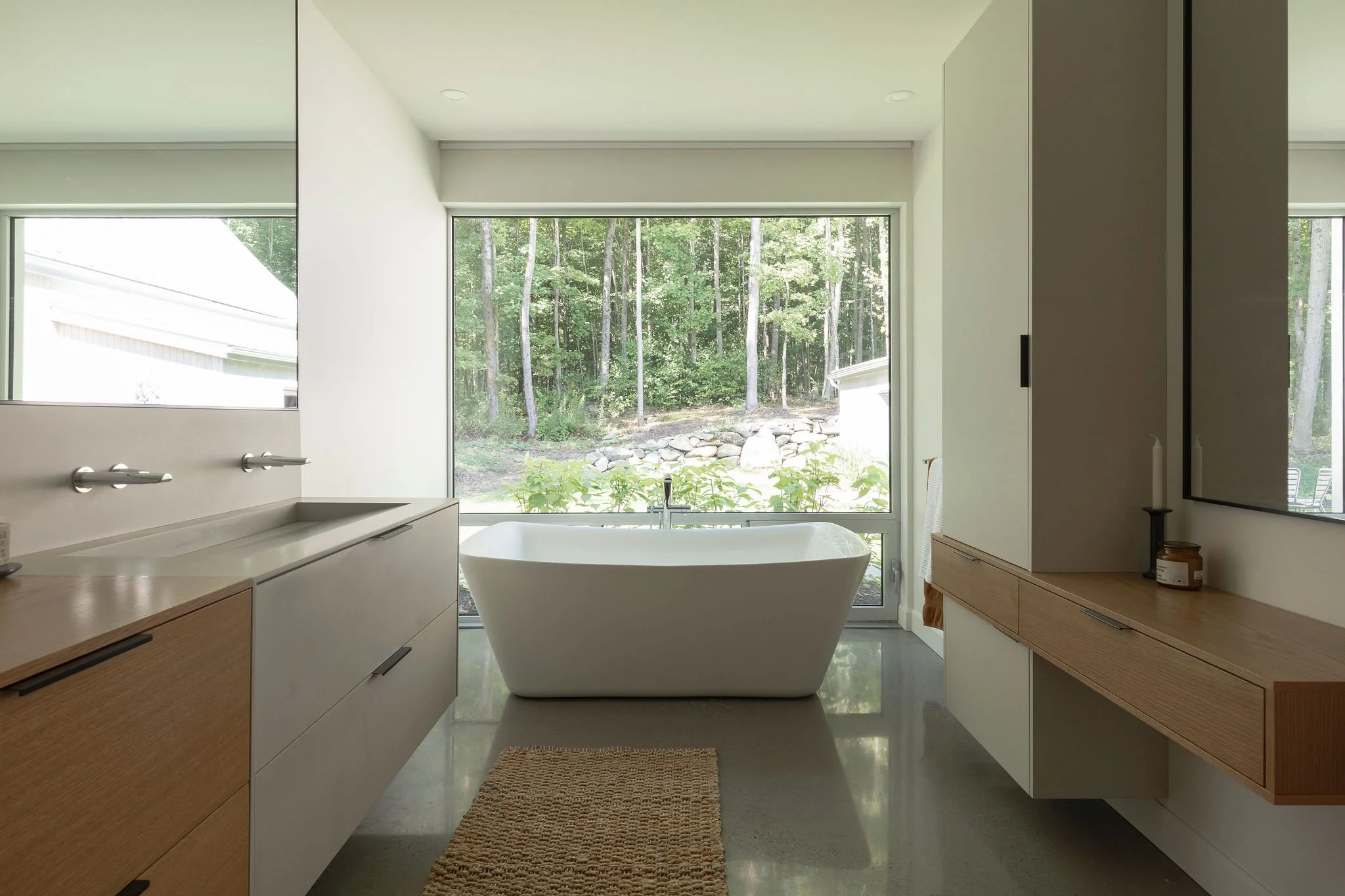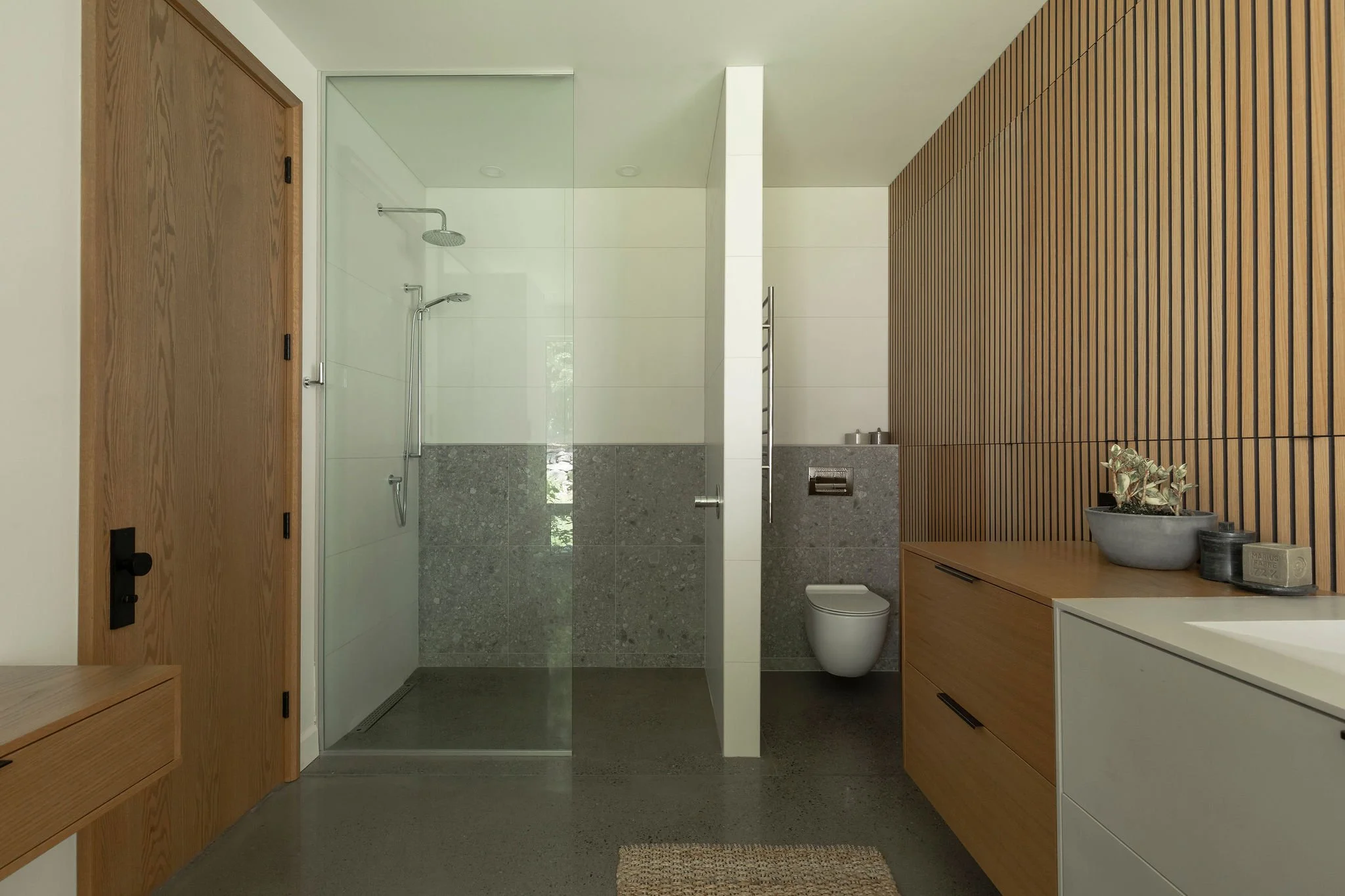Aménagement complet d'une résidence incluant une annexe pour les invités, un espace pour recevoir un grand groupe, dans un style contemporain et chaleureux.